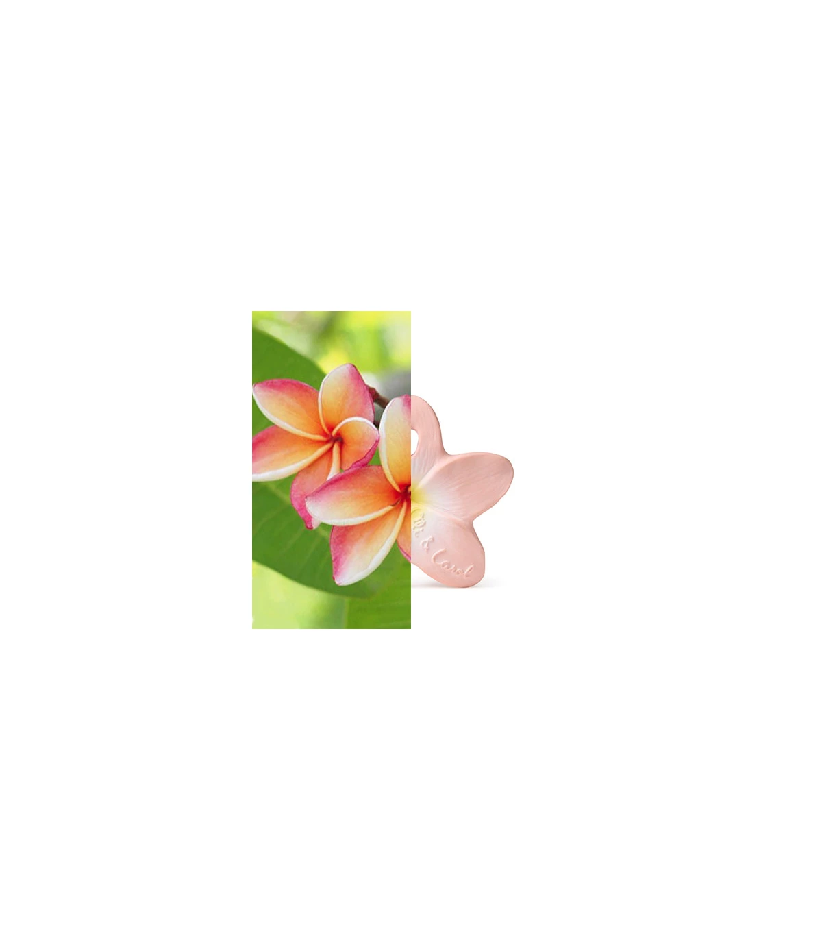 ¿Sabías que la Plumeria, la flor que inspira este mordedor, es originaria de las zonas tropicales del Caribe?